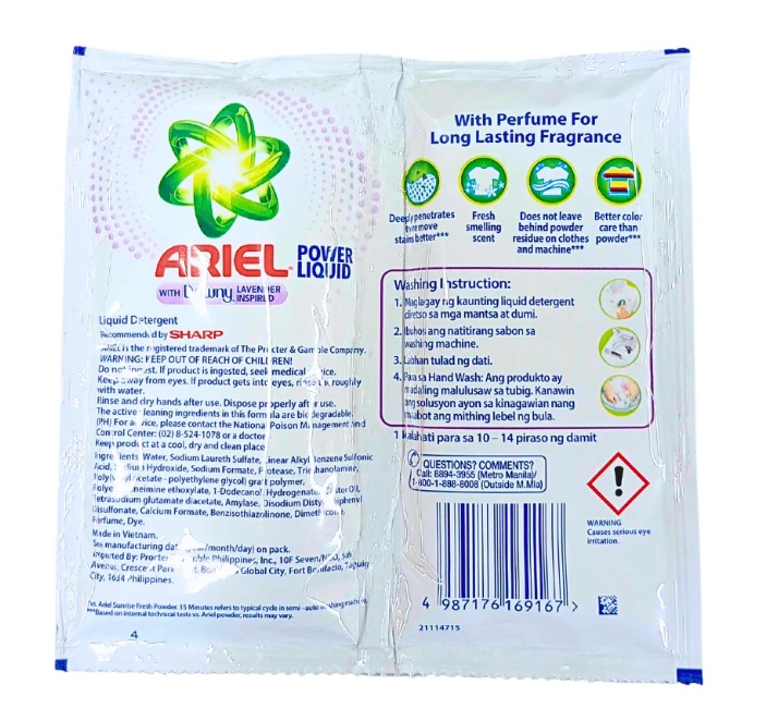 The Ariel Liquid Detergent Power Gel French Lavender is a concentrated laundry detergent designed for both front-load and top-load washing machines. It combines the powerful stain-removal properties of powder detergents with the convenience and fast-dissolving benefits of liquid gels. This version offers a French Lavender fragrance, leaving clothes with a long-lasting, fresh scent after every wash.