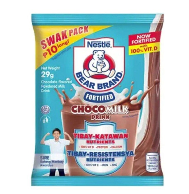 The product is equivalent in nutritional value to a glass of regular Bear Brand Fortified powdered milk and is marketed as a tasty, chocolatey alternative that kids prefer over other brands.