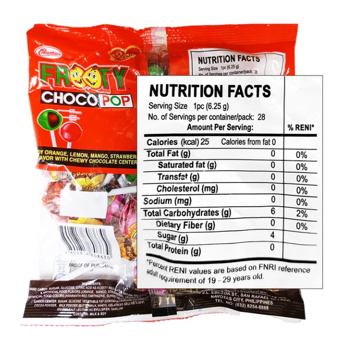 Columbia’s Frooty Choco Pop 25’s is a popular candy product from Columbia Confectioneries, featuring 25 chocolate-infused lollipops in a single pack.  Each lollipop combines a creamy chocolate center with a fun, sweet hard candy shell, making it ideal for children’s parties, school treats, or as a novelty favor at events like weddings and birthdays.