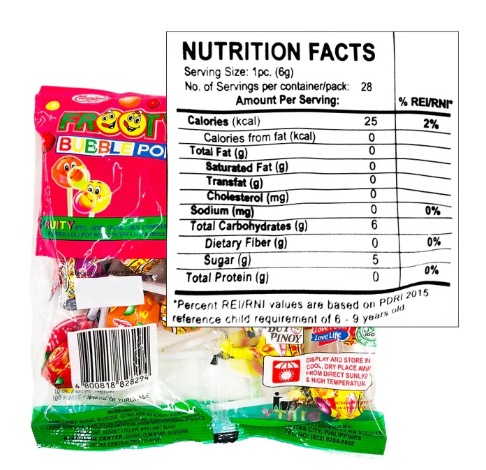 Columbia’s Frooty Bubble Pop 25’s is a fun and unique candy that combines a fruit-flavored hard candy shell with a soft bubble gum center. Each pack contains 25 pieces of assorted fruity flavors, making it a popular choice for kids’ parties, classroom treats, piñatas, and snack time. The dual-texture experience—crunchy on the outside and chewy on the inside—adds to its appeal.
