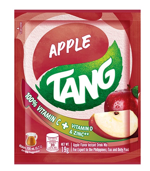 Tang Powdered Juice Apple 19g is a single-serve instant drink mix designed to make a refreshing apple-flavored beverage by simply mixing with water. Each 19g sachet is formulated to deliver a crisp apple taste and is fortified with essential nutrients, including 100% of the daily value of vitamin C per serving, making it a popular choice for a quick, flavorful, and health-conscious drink option.