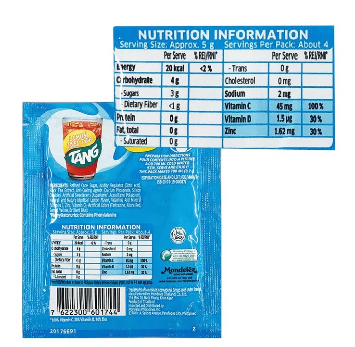 It is part of Tang’s range of instant fruit-flavored drinks, popular in markets like the Philippines, and is often marketed as a family-friendly, no-artificial-preservatives option. The powder is made with real fruit extracts and includes ingredients like sugar, citric acid, instant black tea powder, maltodextrin, and flavorings.