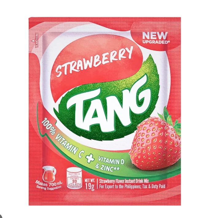 Tang Powdered Juice Strawberry 19g is a single-serve powdered drink mix that delivers a sweet and refreshing taste of ripe strawberries. It’s quick and easy to prepare—just mix with cold water for an instant beverage. Enriched with 100% daily value of Vitamin C per serving, it also contains calcium and is free from artificial preservatives, making it a popular choice for a flavorful and nutritious drink any time of day.